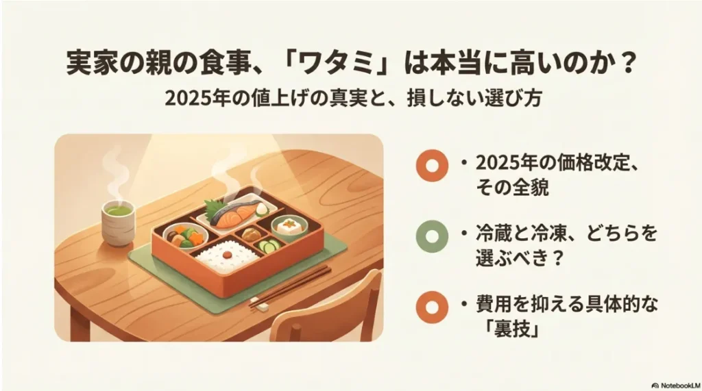 料金についての詳しい分析は、こちらのワタミの宅食の料金は高い?最新の値上げ情報と送料の実質コストの記事も役立つはずです。