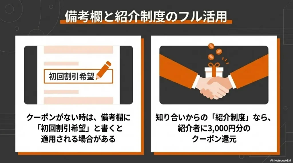 これが「隠れたクーポン」として機能し、一般には公開されていない特別価格を引き出す鍵になります。
